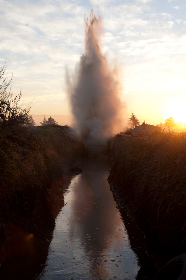 250g of gunpowder detonated in a sewage pipe